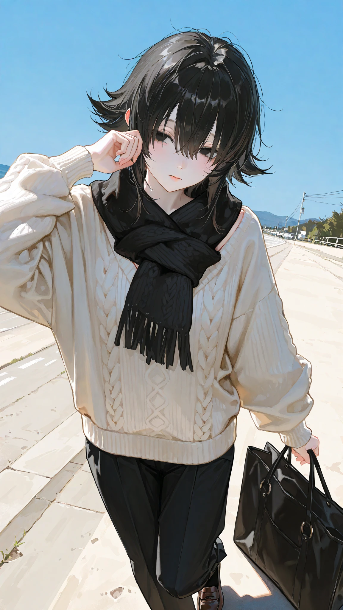 ๋ถ๋๋ฌ์ด ์ด๊ฐ์ ์์ด๋ณด๋ฆฌ์ ์บ์๋ฏธ์ด ๋ํธ๋ฅผ ์ฐฉ์ฉํ๋ค. ๋ชฉ์ ์ด์ง ๊ฐ์ธ๋ ๋ชจํฌ๋ฅ ๋์์ธ์ผ๋ก, ์ ์ฒด์ ์ผ๋ก ์ฌ์ ๋ก์ด ํ์ด ์์ ์ฒด๊ตฌ๋ฅผ ์๋ํ๊ฒ ๊ฐ์ผ๋ค. ํ์๋ ํ์ด์จ์ด์คํธ ๋์์ธ์ ์ง์ ๋ธ๋ผ์ด ์ ์ฝ๋๋ก์ด ์์ด๋ ํฌ์ธ ๋ฅผ ๋งค์นํด ๋ฐ๋ปํ๊ณ ์ฐจ๋ถํ ๋๋์ ์ค๋ค. ์ ๋ฐ์ ํฌ์ธ ๋ฐ๋จ์ ์ด์ง ๊ฐ๋ ค์ง๋ ๋ฅ๊ทผ ์ฝ์ ๋คํฌ ๋ธ๋ผ์ด ๋กํผ. ๋จธ๋ฆฌ์๋ ์๋ฌด๊ฒ๋ ์ฐ์ง ์์์ง๋ง, ์ธ์ถ ์ ์์ํ ๋ ์จ๋ฅผ ๋๋นํด ์ด๊นจ์ ๊ฑธ์น ์ ์๋ ๋ํผํ ๊ฒ์์ ๋จธํ๋ฌ๋ฅผ ์์ ๋ค๊ณ ์๋ค. ํ์ชฝ ์ด๊นจ์๋ ์ฑ ํ๋ ๊ถ์ด ๋ค์ด๊ฐ ๋งํ ํฌ๊ธฐ์ ๊ฒ์ ์บ๋ฒ์ค ์์ฝ๋ฐฑ์ ๋ฉ๊ณ ์๋ค.